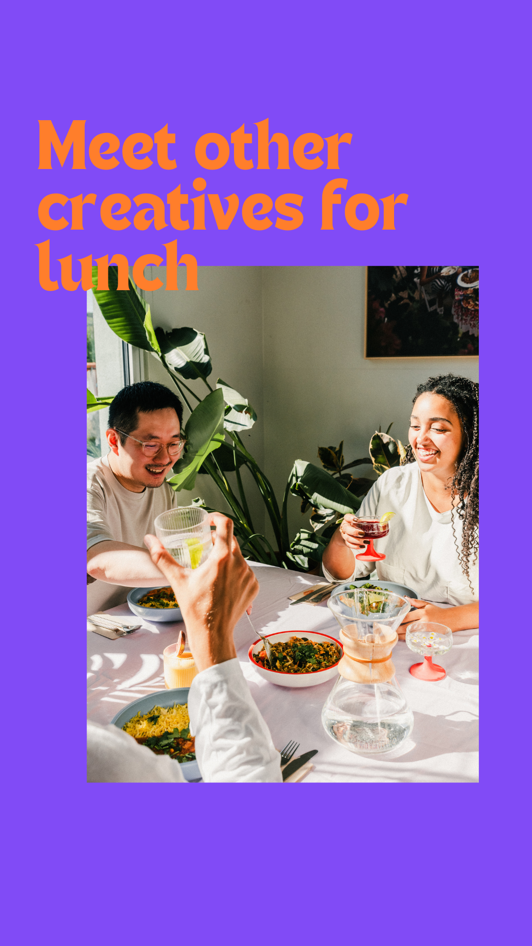 Please complete your payment to become a member of the Creative Lunch Club. As a member you'll get matched with two other creatives every month.